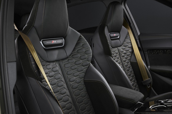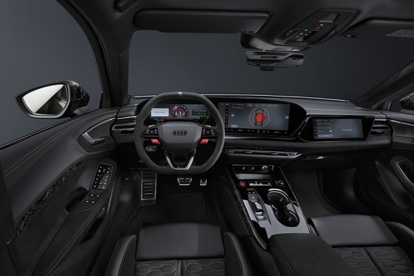 Интерьер доступен в различных вариантах отделки, он дополнен контрастной прострочкой в цветах Serpentine green (зелёный) и Brass (бронза). В салоне предусмотрен сенсорный дисплей MMI диагональю 14,5 дюйма, на него благодаря функции Audi driving experience выводится подробный анализ пройденных маршрутов, а на треке она позволяет сохранять время прохождения участков.