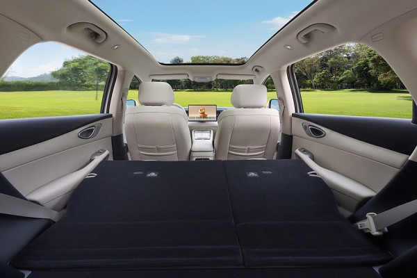 Интерьер тоже в целом одинаковый – тоже от электрокара. Перед водителем расположена виртуальная приборка на 8,8 дюйма. Начальные версии сохранили планшет мультимедиа-системы диагональю 12,8 дюйма, более дорогие варианты имеют дисплей диагональю 15,6 дюйма (для электрического Sealion 05 такой тачскрин в новинку). В зависимости от комплектации паркетник также может иметь беспроводную зарядку, подогрев и вентиляцию передних сидений. Для топовых версий можно заказать расширенный комплекс водительских ассистентов с лидаром над лобовым стеклом.