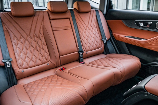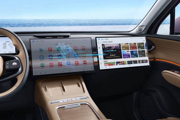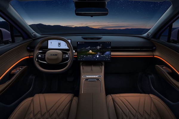 Внутри «элька» в целом повторила глобальную Omoda C7, разве что заменили материалы отделки. В салоне установлены раздельные экраны приборки (10,25 дюйма) и мультимедийной системы (15,6 дюйма). В самой богатой комплектации центральный планшет можно сдвинуть в сторону пассажира (у Omoda C7 в РФ такая фишка пока не появилась).