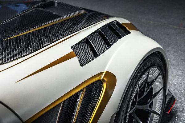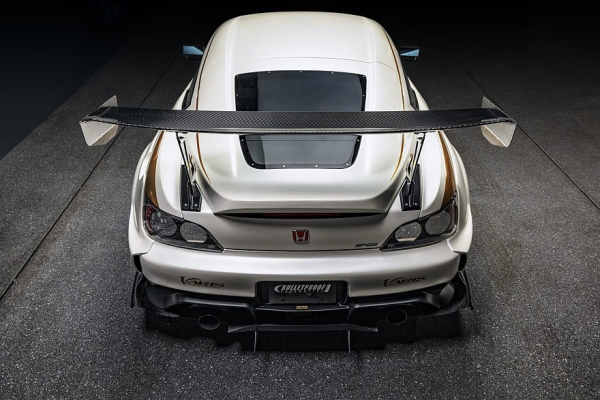 Новый весьма агрессивной образ Honda S2000 BP25 формируют тщательно подобранные друг к другу компоненты от разных производителей, в том числе углепластиковый widebody-обвес Varis Dark Panther, доработанная Bulletproof жёсткая крыша от Spoon и кастомные светодиодные фонари. На крышку багажника установлено огромное фиксированное антикрыло, а задний бампер ощетинился торчащими лезвиями диффузора.