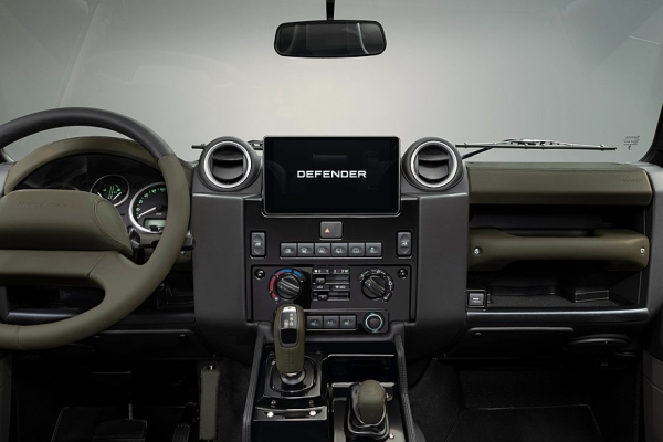 Цвета и материалы отделки салона рестомода тоже могут быть подобраны в стиле Defender Octa — палитра тут очень большая. Показанные на фотографиях ковшеобразные клесла Recaro могут показаться слишком вычурными для общего квадратно-гнездового стиля этого внедорожника, но вместо них можно выбрать более традиционные кресла с интегральными или регулируемыми подголовниками. На свежих фотографиях можно заметить также прежде не предлагавшийся полноценный мультимедийный экран (раньше была только магнитола со встроенным 3,5-дюймовым экранчиком), ради него слегка перекомпонована центральная консоль.