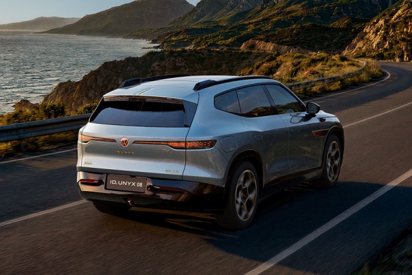 Паркетник получил двухэтажную головную оптику: сверху расположены состоящие из множества светодиодных треугольников вытянутые секции дневных ходовых огней, под ними идут компактные блоки основных фар. Задние фонари оформлены в стиле ДХО. Volkswagen ID.Unyx 08 также имеет безрамочные двери с выдвижными ручками и стеклянную крышу. Новинке положены 20- или 21-дюймовые колеса.
