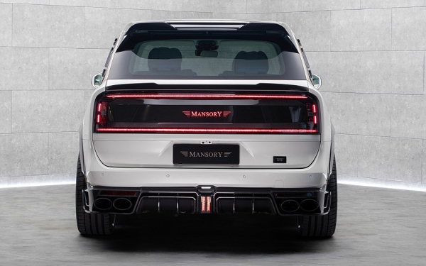 Компания Mansory решила отдать дань успеху Zeekr 9X и теперь предлагает своей вариант его «огранки». Кузов получил пышный обвес из карбона, заметно усложняющий изначально вполне лаконичные формы китайского кроссовера. Особенно сильно перекроен нижний периметр: передний бампер обзавёлся раздвоенным сплиттером, пороги — новыми накладками и выдвижными подножками, задний бампер — лезвиями диффузора и четырьмя настоящими выхлопными патрубками (у стокового кроссовера видимых патрубков нет, они спрятаны за юбку заднего бампера).