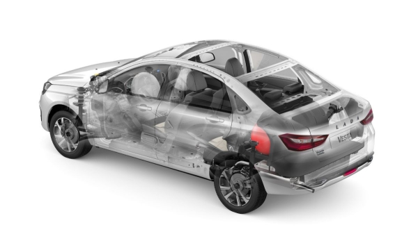 Пока обновленная Веста CNG предложена только в кузове седан. Ее дизайн ничем не выдает битопливность силовой установки, хотя за лючком бензобака, помимо привычной горловины, разместился заправочный штуцер, ведущий к двухкомпонентному (сталь и стекловолокно) газовому баллону объемом 90 л, который рассчитан на закачку 22 кубометров сжатого метана. Тольяттинские инженеры традиционно разместили газовый баллон в багажнике Весты, сократив его объем со стандартных 480 до 250 литров. При этом штатный бензобак остался прежним и по-прежнему вмещает 55 л бензина.