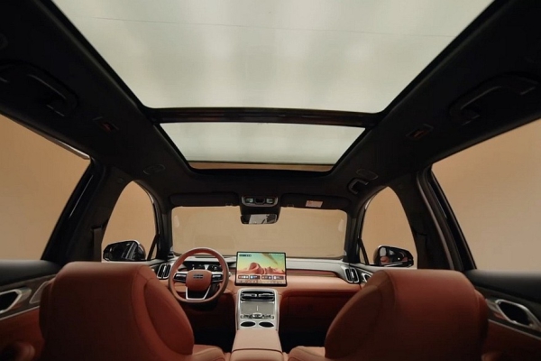 Внутри Geely Galaxy M7 подражает «традиционному» Geely Boyue L, хотя стопроцентного совпадения нет. Новый кроссовер получил аналогичную переднюю панель с вертикальными боковыми дефлекторами обдува, такие же карты дверей, раздельные экраны приборки и мультимедийной системы. Но руль – свой, верхняя часть двухэтажного центрального тоннеля тоже скомпонована иначе. Мультимедиа работает на операционке Flyme Auto. В списке оборудования еще заявлены беспроводная зарядка, аудиосистема Flyme Sound с 23 динамиками, панорамная крыша и атмосферная подсветка «на базе искусственного интеллекта».