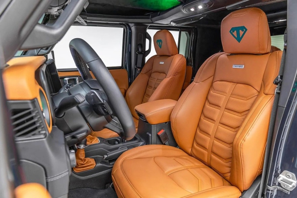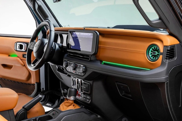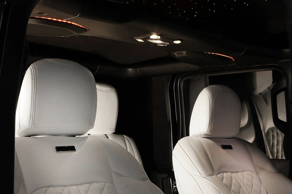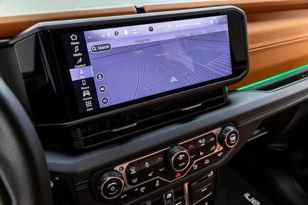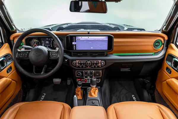 В салоне можно увидеть аналоговые приборы, горизонтальный планшет информационно-развлекательной системы на передней панели и массу физических кнопок. В списке доступных опций для «третьего» вездехода числятся: бронированный кузов, пуленепробиваемые стёкла, мощная защита днища, тепловизионная система ночного видения, противоударные бамперы, а также усиленная подвеска с амортизаторами Fox Racing 3.0. Модель снабдили передними и задними тормозами Dynatec ProGrip.