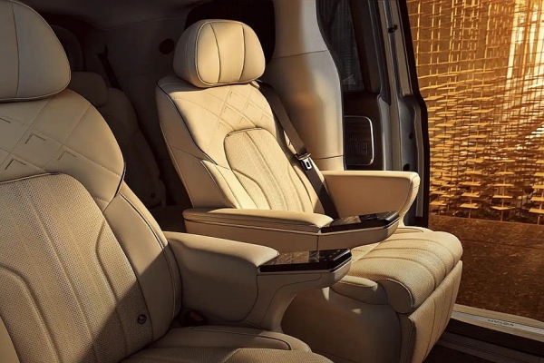 В салоне Voyah Dream+ вместо трехэкранного табло установлены отдельные дисплеи приборки и мультимедийной системы. Для пассажиров предусмотрен свой планшет – он прикреплен к потолку. Раздельные кресла второго ряда имеют встроенные в подлокотники пульты, откидные подставки для ног, «расширенные зоны подогрева», вентиляцию и 26-точечную систему массажа. В списке оборудования нашего нового минивэна еще значатся проекционный дисплей и аудиосистема с 22 динамиками.