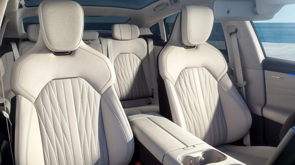 В салоне пересмотрены и улучшены материалы отделки, кнопочки стали более премиальными на вид — с «позолотой», обновлён дизайн руля и дверных карт, сиденья получили более замысловатую прострочку и новую, более комфортную набивку. Центральный тоннель между передними креслами перекомпонован, лоток с беспроводной зарядкой на два смартфона стал крупнее. Размеры экранов на передней панели прежние: приборный — 7,1-дюймовый, мультимедийный — 16,1-дюймовый.
