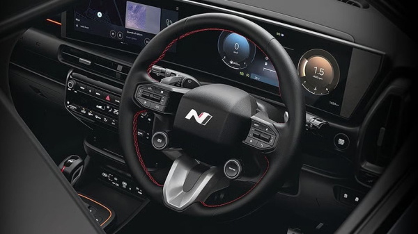 Как и у стандартной версии, Venue N Line положено горизонтальное изогнутое табло, которое объединяет в себе виртуальный щиток приборов и тачскрин информационно-развлекательной системы, диагональ каждого дисплея равна 12,3 дюйма. Кроссовер получил также акустическую систему Bose с восемью динамиками и комплект систем безопасности ADAS второго уровня.