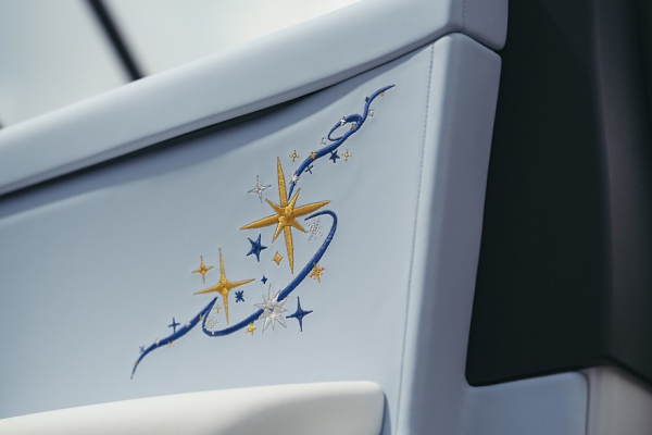 Одной из главных особенностей кроссовера британской марки в уникальном исполнении Cosmos является расписанный вручную потолок.