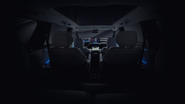 Опубликованный на прошлой неделе тизер салона показал, что у новинки будет трёхрядный салон. На передней панели располагается горизонтально вытянутый дисплей, исполняющий роль виртуальной приборки, а также крупный тачскрин информационно-развлекательной системы. Перед водителем находится двухспицевое круглое рулевое колесо с физическими кнопками.