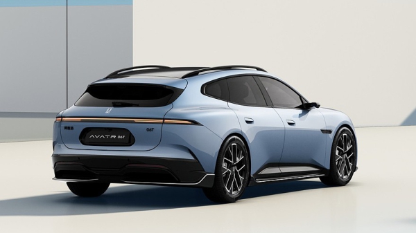 Корма универсала отличается от седана, очевидно, за счёт иной формы крыши с панорамным люком, полноценной покатой багажной двери с лаконичным двухцветным спойлером в верхней части, а также за счёт узкой полоски «монофонаря», которая проходит через всю ширину бампера, доходя до задних крыльев. Отметим, Avatr 06T снабдили утопленными дверными ручками, так как выдвижные в Китае оказались под запретом.
