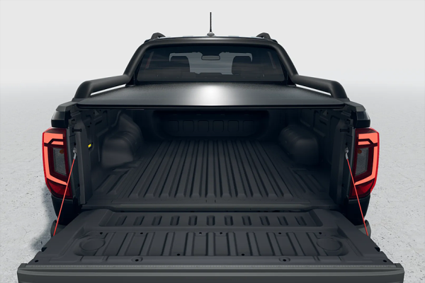 Корма нового VW Amarok Dark Label тоже получила несколько отличий от обычной версии. Так, модели достались затемнённые фонари, матово-чёрная планка, проходящая по трём сторонам грузовой платформы, тонированное заднее стекло и откидной борт с чёрной ручкой (у некоторых других версий она окрашена в цвет кузова).