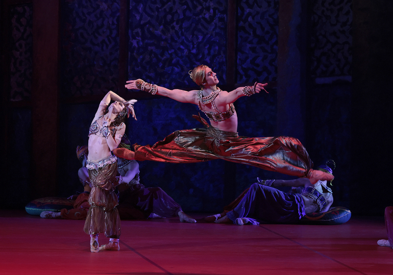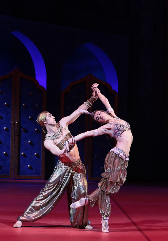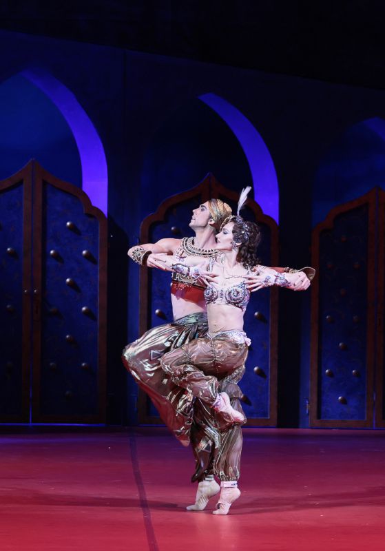 Зобеида — Юлия Степанова. Золотой раб — Дмитрий Выскубенко. Сцена из спектакля «Шехеразада».Фото Дамира Юсупова/ Большой театр.
