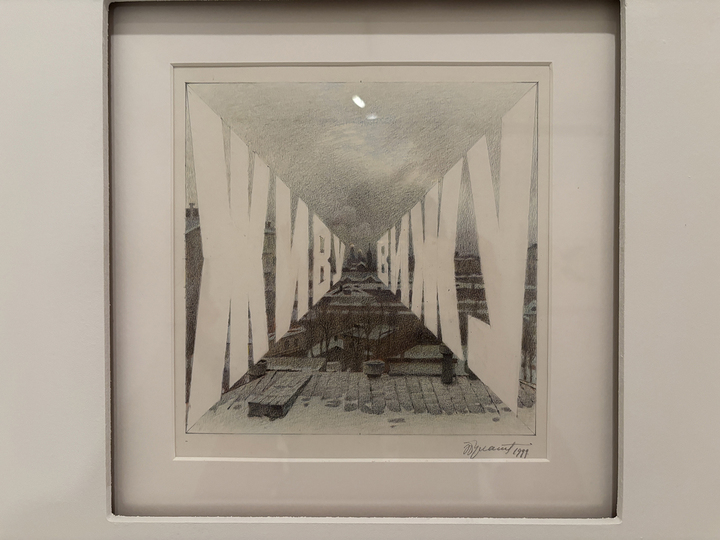 Два «ключа» к его творчеству, вербальный и визуальный, рассыпались по всему белоснежному экспозиционному пространству. Белый фон и пол не случайны — так работы мастера смотрятся и воспринимаются качественнее всего. И мы знакомимся с хрестоматийными работами Булатова: «Стой — иди», «Вверх — вниз», «Вход — входа нет»; с эскизами к «Живу — вижу», «Свобода есть свобода» и другие. Кстати, «эскизный зал» — еще один пример сочетания вербального и визуального в творчестве Булатова, в уютной комнатке на первом этаже экспозиции посвятили отражению поэзии Всеволода Некрасова, близкого друга и единомышленника Эрика Булатова. Предваряет эту историю инсталляция со стихотворениями разных лет, так мы погружаемся в текст, а затем — в его визуализацию. Еще одна трогательная страница выставки тоже сочетание текста и картин (кстати, художник очень хотел, чтобы понятие «живопись» было заменено на «картины») — детская книжная иллюстрация. Оформление этого зала похоже на библиотеку, где можно сесть и бережно, ностальгируя, полистать тоненькие советские книжечки с детскими сказками.