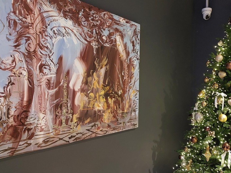 На холстах запечатлены ужин при свечах, последние гости, початые бутылки, остатки угощения. Из стены торчит 30-сантиметровый чудо-бутерброд с черной икрой, сделанный из бархата, агата, астрофилита, символизирующий радость жизни. Бутерброд Полины Штанько «не первой свежести», он создан еще в 2023 году, но интерес к нему большой.