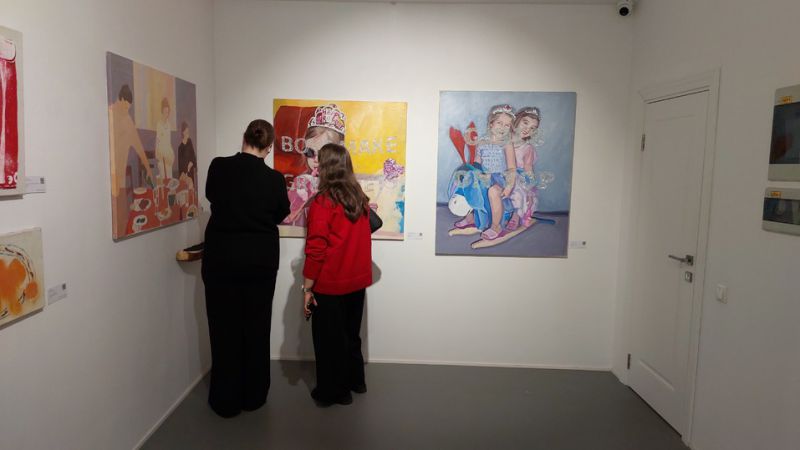Дальше посетителя ждет застолье, напоминающее о приближающемся празднике. Сыт им, конечно, не будешь, но воспоминания – лучшая награда. Все мы были когда-то такими же нарядными детьми в масках и коронах, юными царевнами за праздничным столом, так же водили хороводы вокруг елки, как акриловые «Мальчики-зайчики, девочки-снежинки» Варвары Нагорновой и ее коллег. Нет в этих картинах наивности и милоты, но есть детские страхи, волнение перед детсадовским утренником.