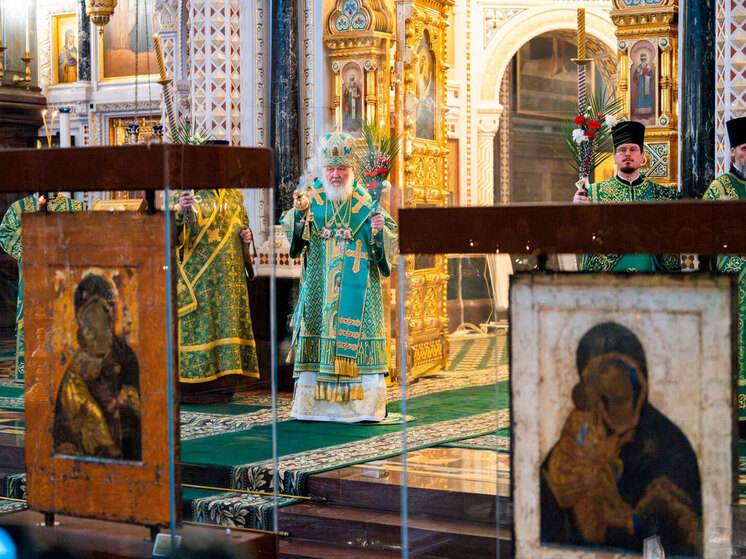 Икону Божией Матери «Владимирскую» передали из Третьяковки в Храм Христа Спасителя: фоторепортаж