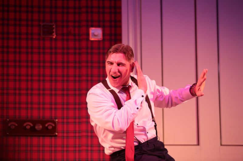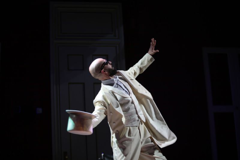 — Репетиции тяжелые, сложный спектакль, идет на большой скорости — это нагрузка, организм дает сбой, охрип голос, — с улыбкой говорит Миллер. Оказывается, только что он лежал под капельницей, чтобы восстановить голос, — у него роль яркая, ему приходится вдоволь похулиганить и покричать и выскакивать из шкафа на диван, перепрыгивать через банкетку, вылезать в окно, ловко взлетая над подоконником, да и танцы никто не отменял! Нам, зрителям, сидящим в зале, весело и легко, только успевай щеки массировать, а на сцене артисты во всех смыслах потеют, создавая эффект легкости и непринужденности происходящего. При этом сам Миллер отметил, что перед нами «не совсем комедия, история страшная».