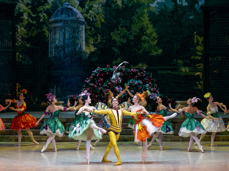 Педро Сеара (Сфинкс), Полина Чеховских (Настурция), Марина Накадзима (Маргаритка) в балете «Роман бутона розы». Предоставлено пресс-службой фестиваля «Видеть музыку»