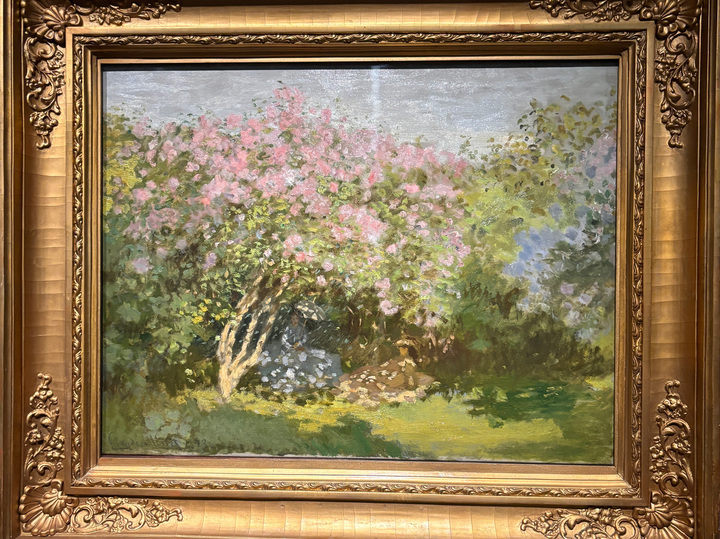 Прелесть. Слово, которое лучше всего отражает впечатления от выставки — медитативной, располагающей к созерцанию и душевной радости, ведь вдохновлялись они французскими импрессионистами — отсюда и «центр» экспозиции, представляющей собой «ядро», от которого мы отталкиваемся и начинаем вращаться по ларионовско-гончаровской орбите. В середине — «Сирень на солнце» Клода Моне, работы Эдуара Вюйара, а также Леонида Пастернака, Константина Коровина — у последних двух молодые художники обучались в Московском училище живописи, ваяния и зодчества. И показ «учителей» здесь не случаен — в бытовых зарисовках мы видим, как «У окна» Вюйара отражается в «Женщине в кресле» Гончаровой, например, — и такие оммажные переклички здесь не редкость. Наглядное воплощение строчки из песни Басты: «Учитель продолжается в своем ученике».