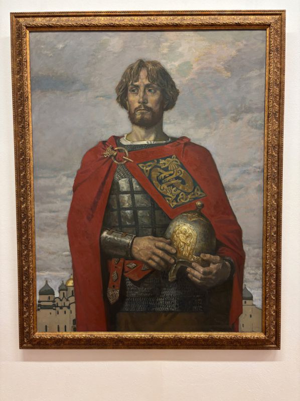 Еще одну выставку, посвященную Году защитников Отечества, открыли в Российской академии художеств, можно сказать, что это выставка-рифма по двум причинам. Первая — в этом году весной здесь уже проводили выставку ко Дню Победы, а сейчас экспозицией «Защитникам Отечества» здесь закрывают знаковую для страны тему 2025-го. Вторая — сами работы расположены по принципу «рифмы»: если встать в середине одного из залов, посмотреть налево, а затем направо, можно увидеть, что по обе стороны на нас глядят Александры Невские, но разные.