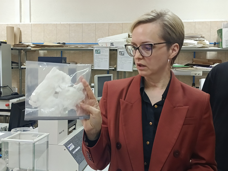 Наталья Щербак демонстрирует волокнистое сырье для «космической бумаги».