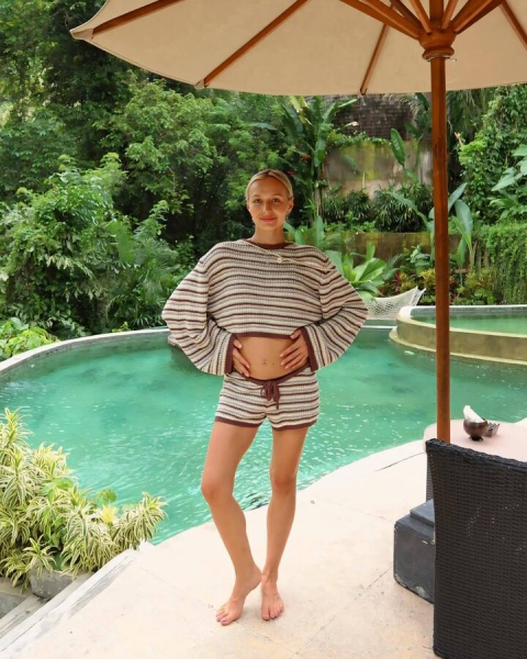 Ждущие второго ребенка супруги-гимнасты Никита и Дарья Нагорные отправились в отпуск. Будущая дважды мама устроила красивую фотосессию, показав изменения в фигуре.