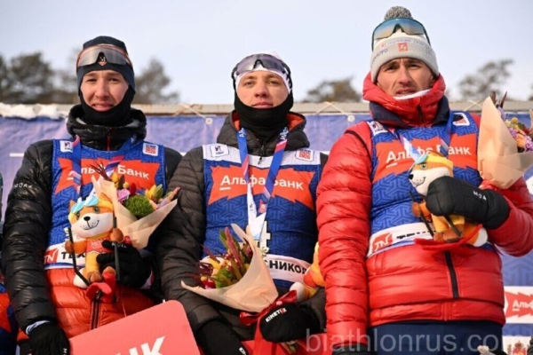 Иван Котлов, Савелий Коновалов и Карим Халили. Фото: Союз биатлонистов России