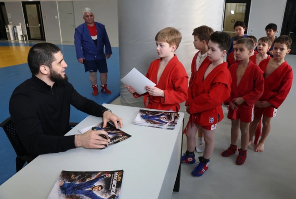 Ислам Махачев раздает автограмф и общается с юными спортсменами / фото: ФИАС