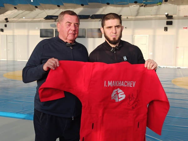 После совместного выступления Василий Шестаков вручил Исламу именную красную куртку самбо с фамилией Махачева и логотипом международной федерации. 34-летний спортсмен, который последний раз выступал на официальном уровне в этом отечественным виде единоборств в 2016 году, когда стал чемпионом мира по боевому самбо, после чего продолжил свою карьеру в смешанных единоборствах, с большим уважением и аккуратно одевал подаренную борцовку. «Все правильно я завязываю, Василий Борисович?», — переспросил чемпион UFC в двух весовых категориях. «Всё верно, не забыл», — похвалил нового «Посла самбо в мире» президент ФИАС.