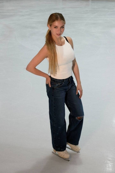 Трусова сфотографировалась на катке. На тренировку спортсменка пришла в синих широких джинсах и белой майке. Александра сделала легкий макияж и собрала длинные волосы в низкий хвост.