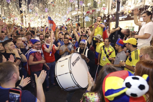 Футбольные болельщики на Никольской улице во время ЧМ-2018 по футболу / фото: AP