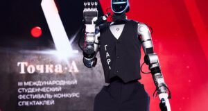 Робот Гарик. Фото: Пресс-служба фестиваля тестовый баннер под заглавное изображение Закрытие смотра студенческих спектаклей было столь же оригинальным,